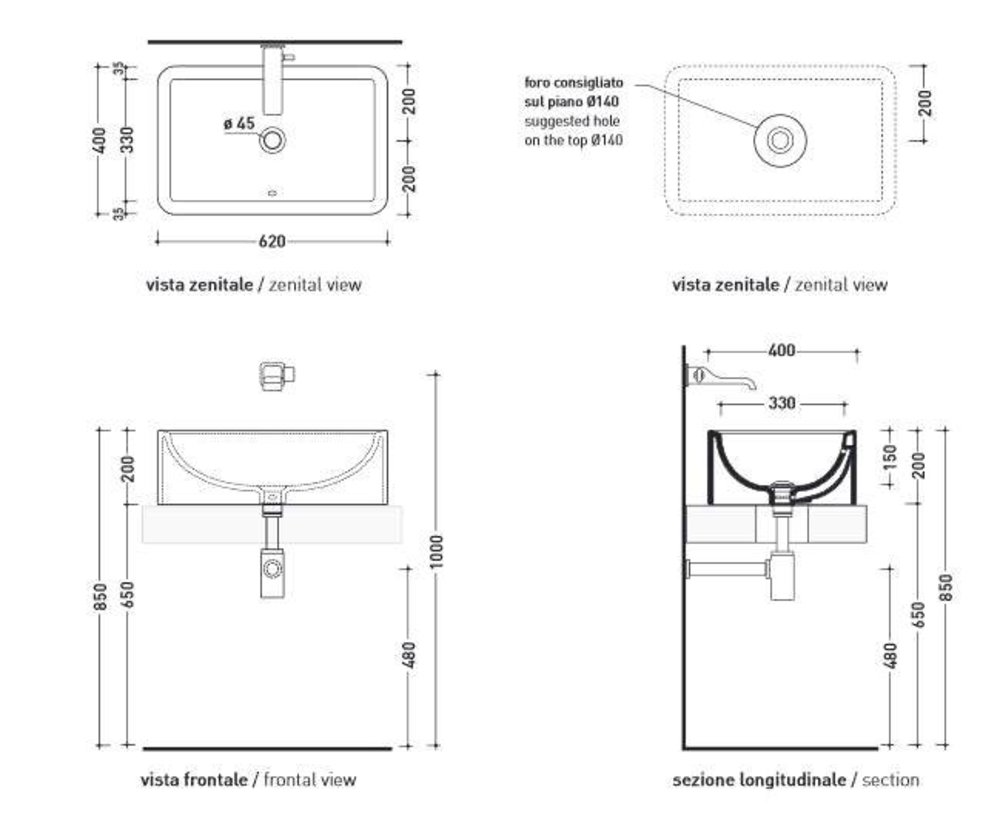 Раковина Flaminia Nile NL62H20 62х40 см, цвет белый