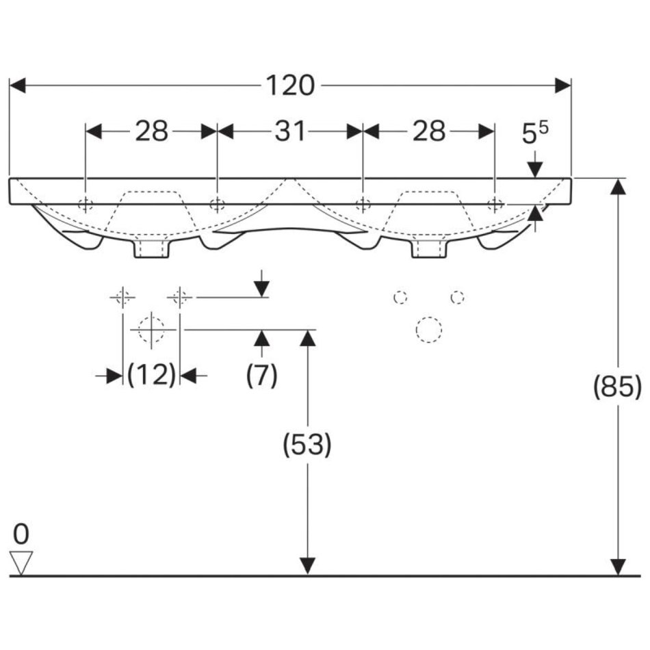 Раковина Geberit Acanto 500.628.01.2, 120 х 48,2 см, двойная, белая