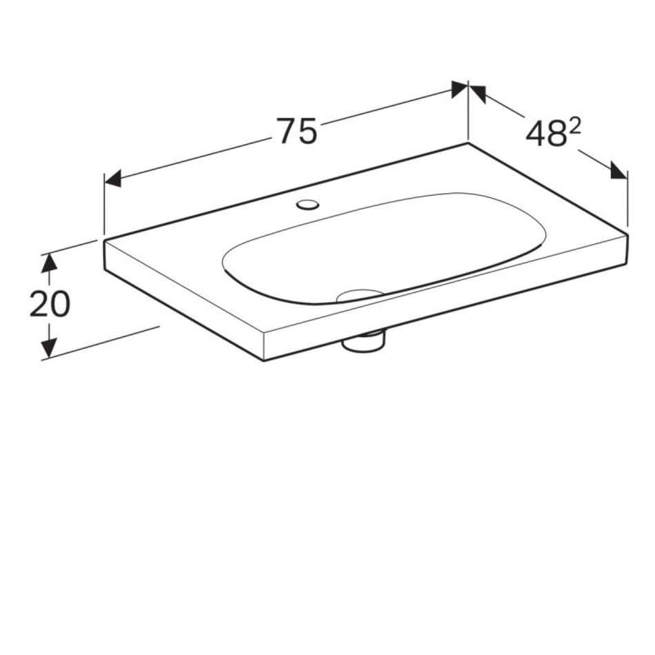 Раковина Geberit Acanto 500.630.01.2, 75 х 48,2 см, скрытый перелив, белая