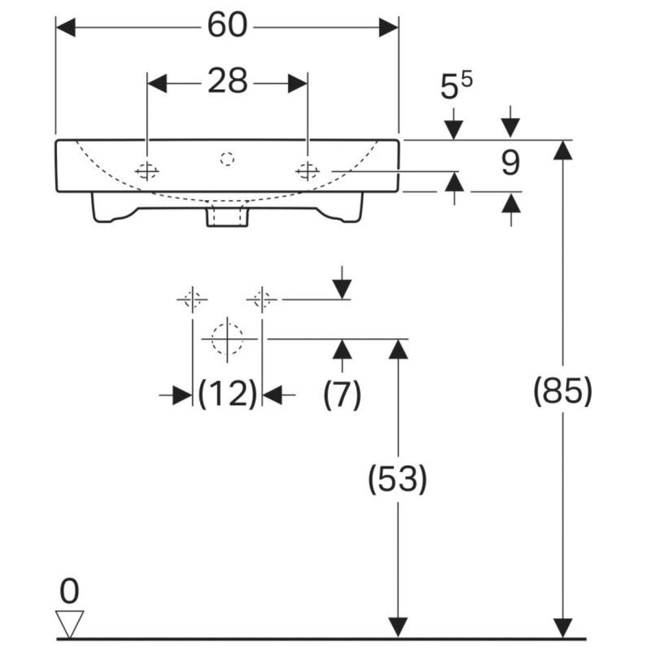Раковина Geberit iCon 124063000, 60 х 48,5 см, с переливом по центру, без отверстия под смеситель, белая