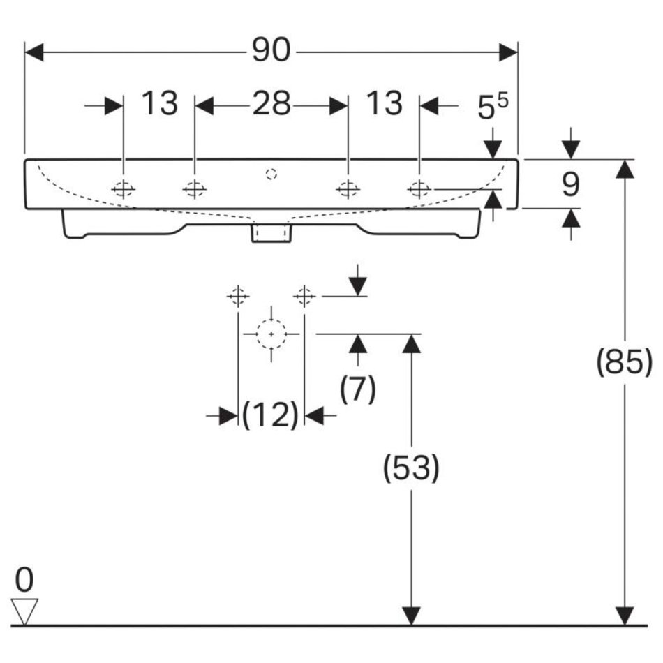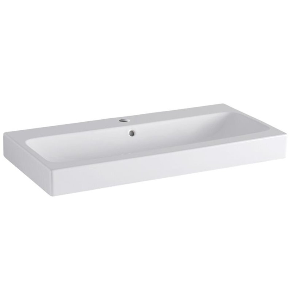 Раковина Geberit iCon 124090000, 90 х 48,5 см, перелив и отверстие под смеситель по центру, белая