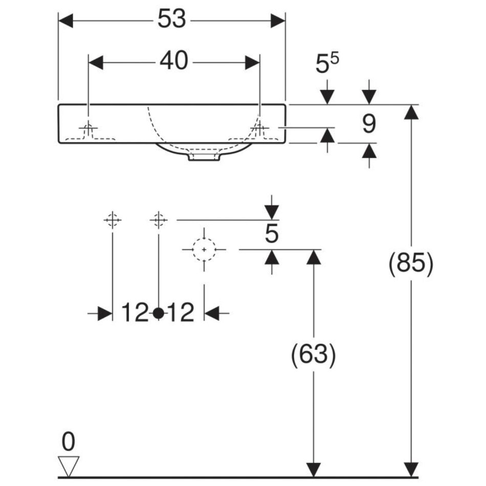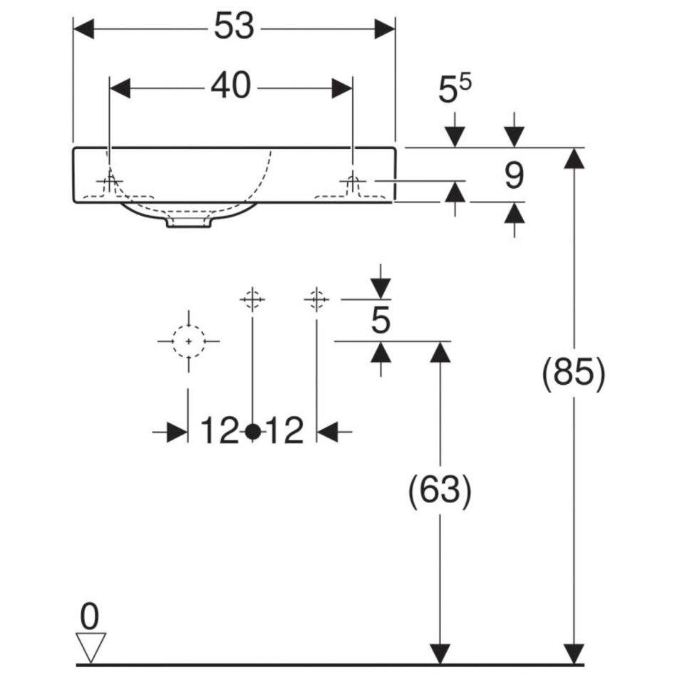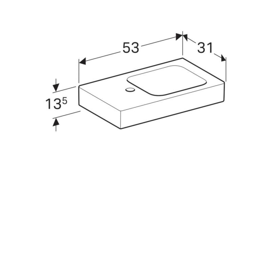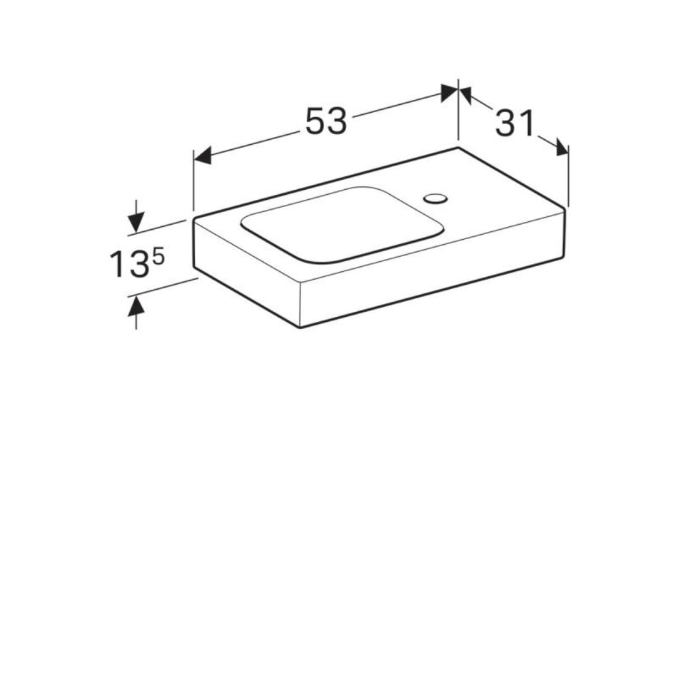Раковина Geberit iCon 53 х 31 см, с крылом, без перелива, отверстие под смеситель на крыле, белая
