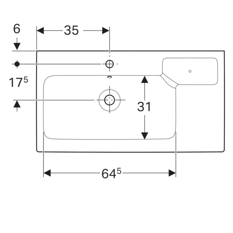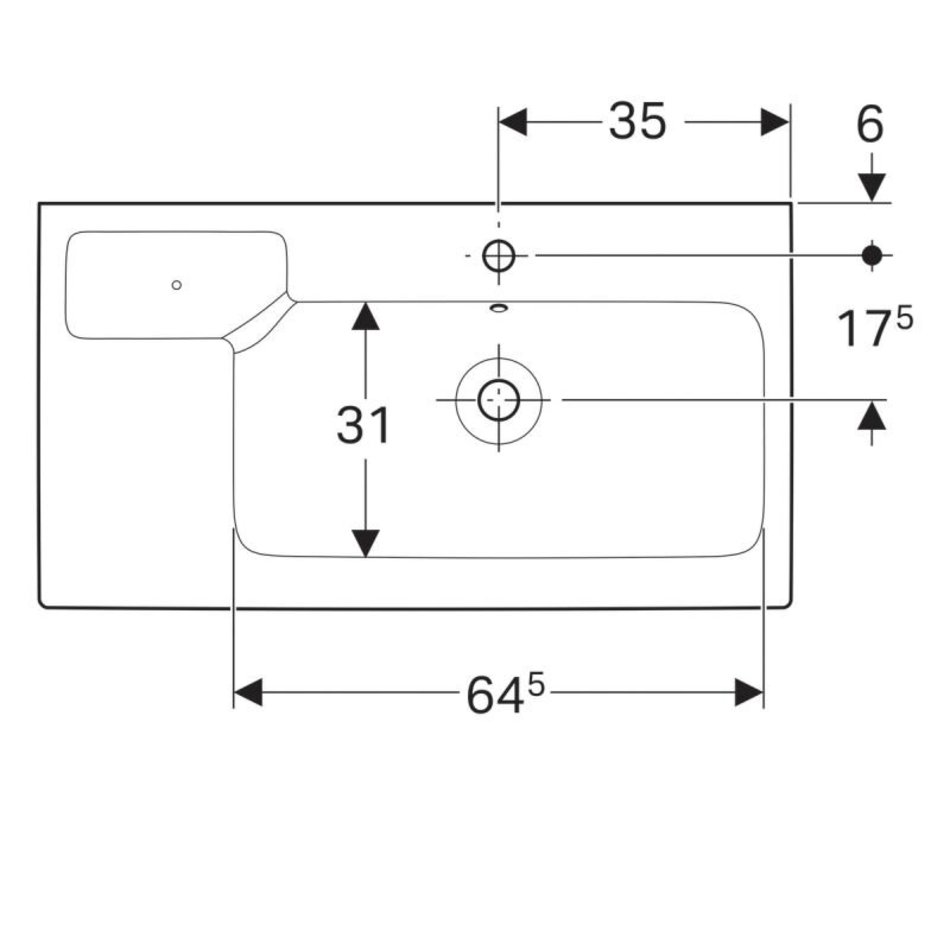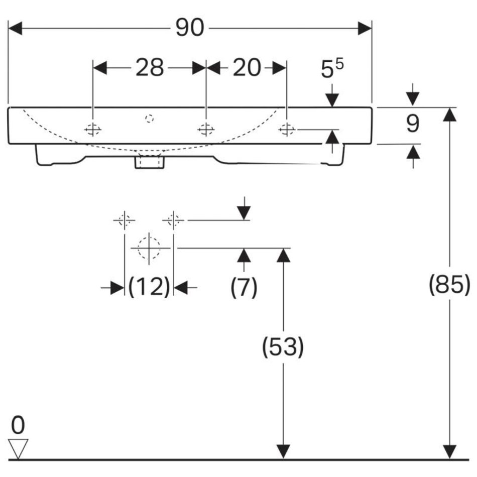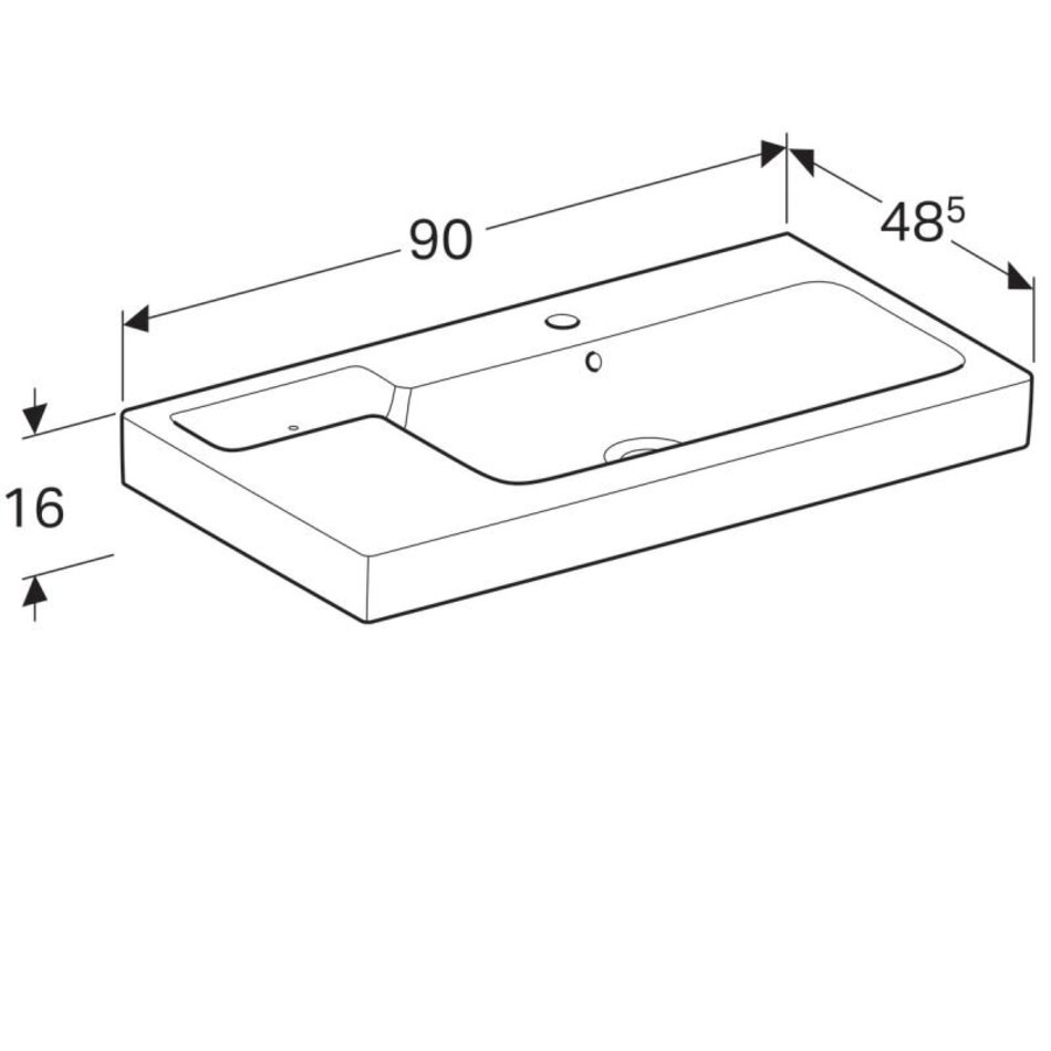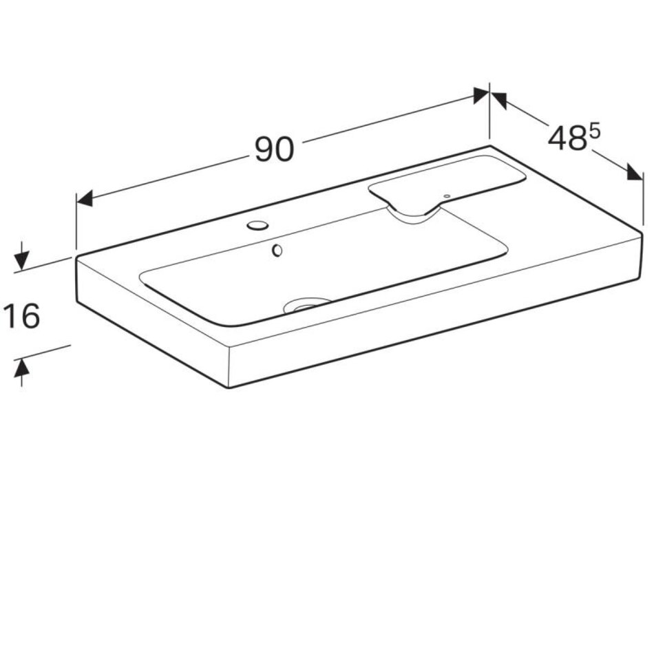 Раковина Geberit iCon с мыльницей, 90 х 48,5 см, перелив и отверстие под смеситель по центру чаши, белая