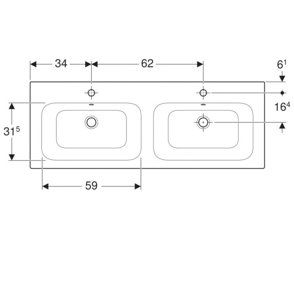 Раковина Geberit Renova Plan 122230000, двойная, 130 х 48 см, белая