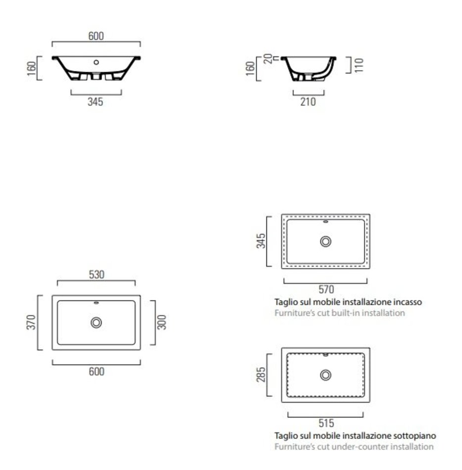 Раковина GSI Kube X, встраиваемая сверху, 60 x 37 см, белый глянцевый, 895311