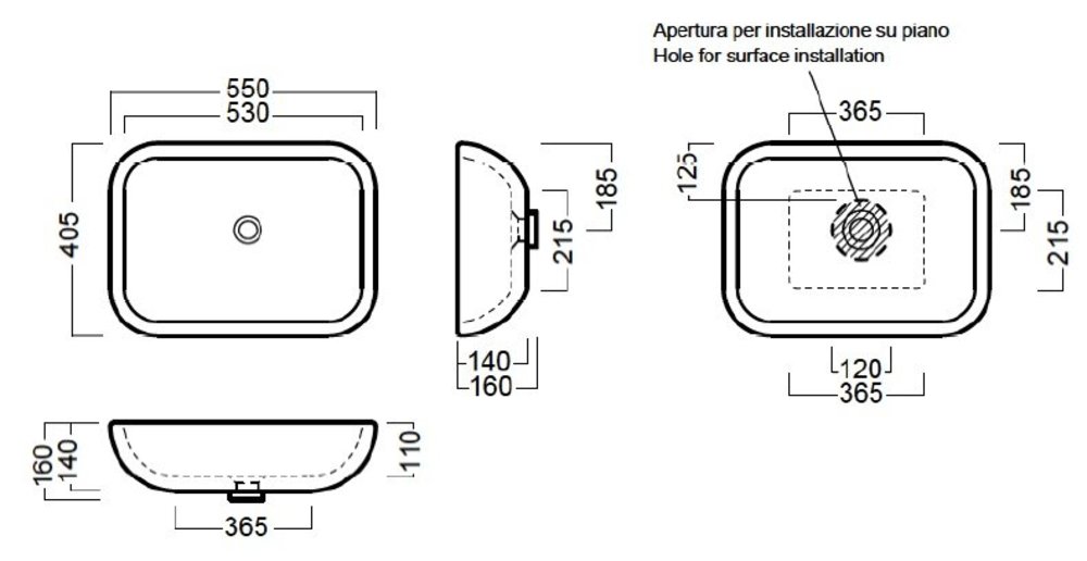 Раковина Hatria Happy Hour Y0QQ01, 55 х 40,5 см для установки на столешницу