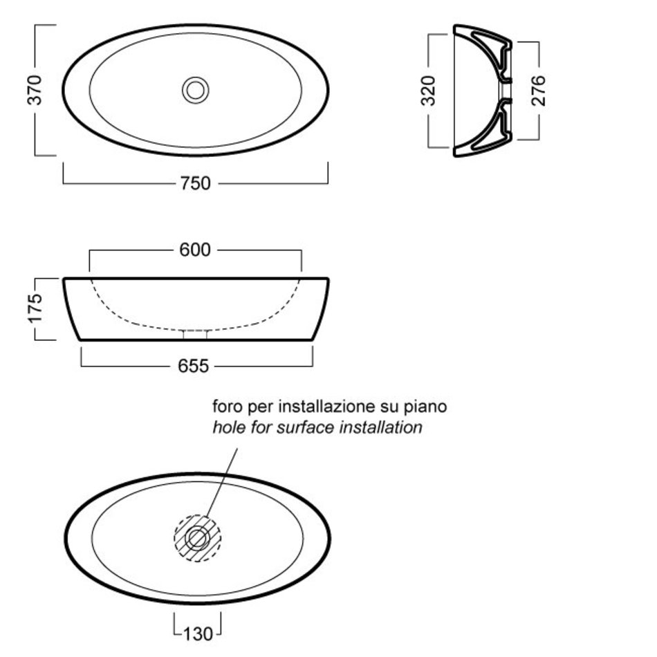 Раковина Hatria Nido 75 см Y0R201 75 х 37 см, накладная