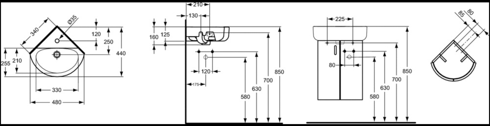 Раковина Ideal Standard Connect E793101 угловая