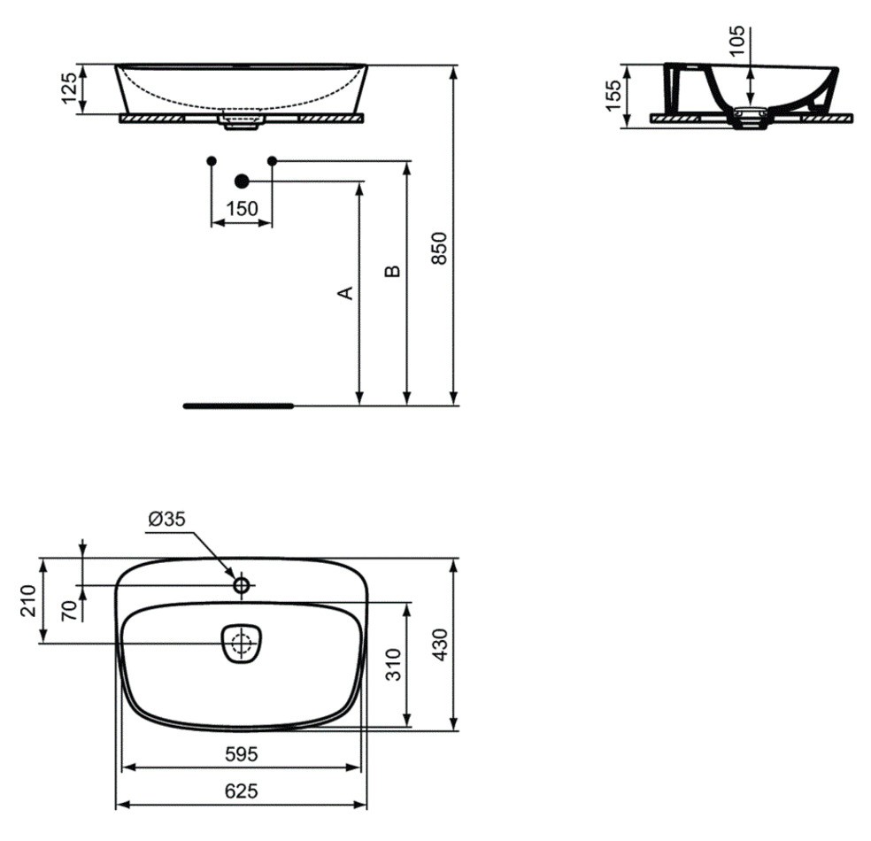 - Для монтажа соло с дизайн-сифоном или с мебелью Dea