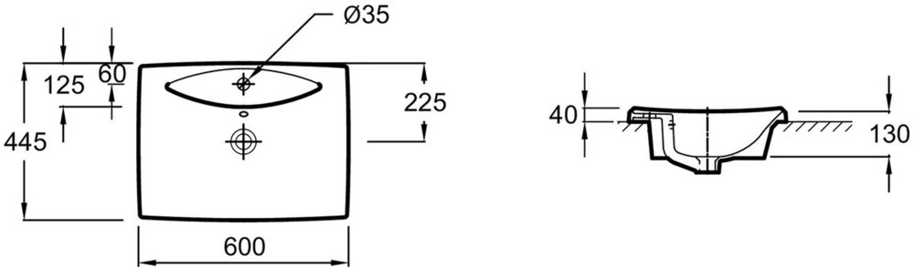 - Встраиваемая раковина Escale устанавливается сверху.