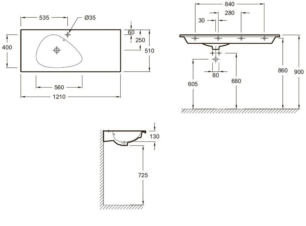 Раковина Jacob Delafon Nouvelle Vague EXAP112-00, накладная, белый глянцевый, 121 х 51 см