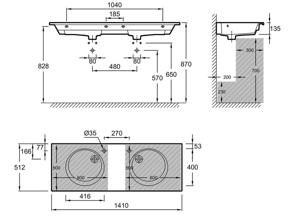 Раковина Jacob Delafon Odeon Rive Gauche EXAS112-00, 140 см, белая