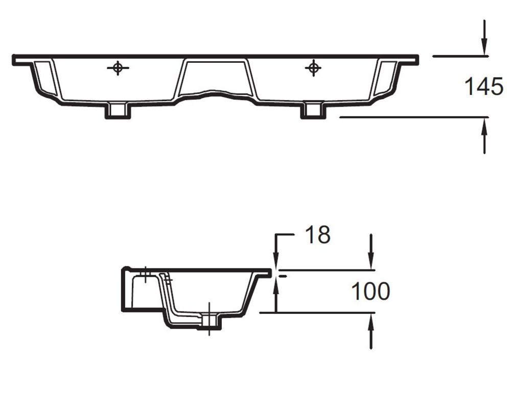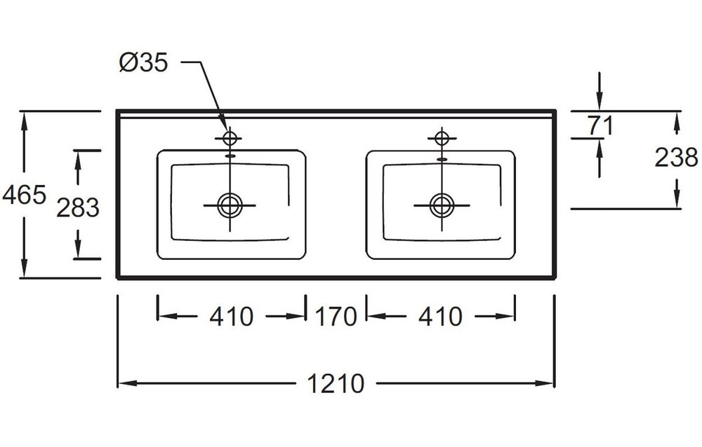 С отверстиями для смесителей по центру чаш