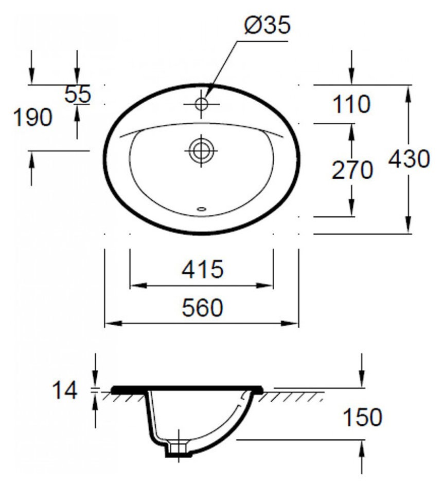 Раковина Jacob Delafon Patio E4155 -встраиваемая, устанавливается сверху. Одно сквозное отверстие, два размечено.