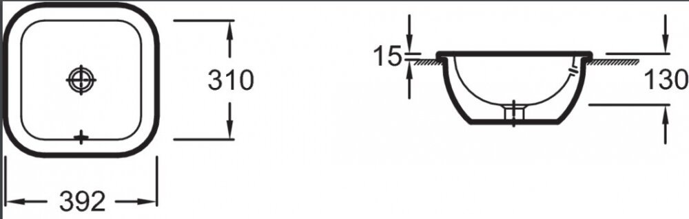 - Размер для выреза: 310*310 мм