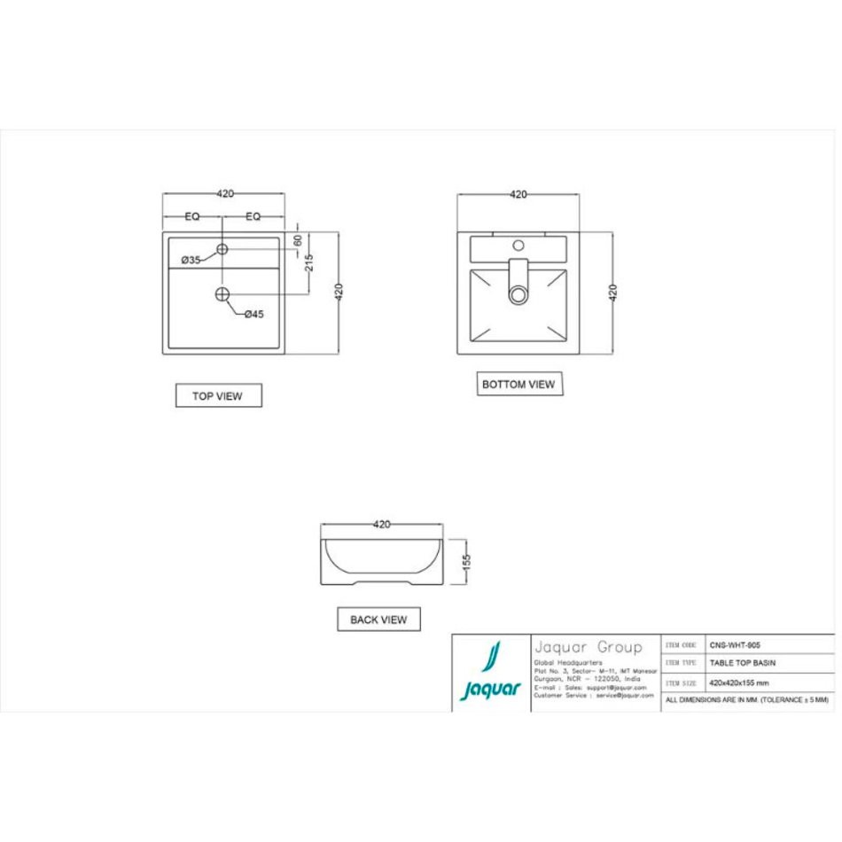 Раковина Jaquar CNS-WHT-905, 42 см, фарфор, цвет белый