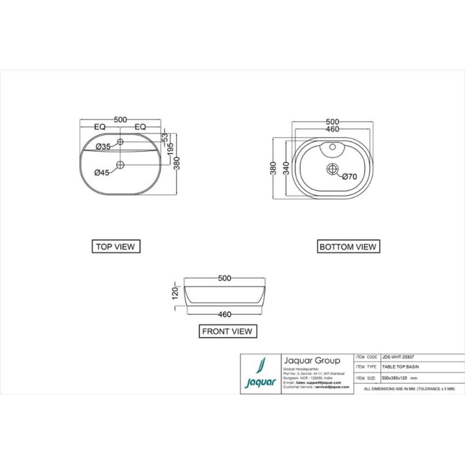 Раковина Jaquar JDS-WHT-25937, 50 см, фарфор, цвет белый