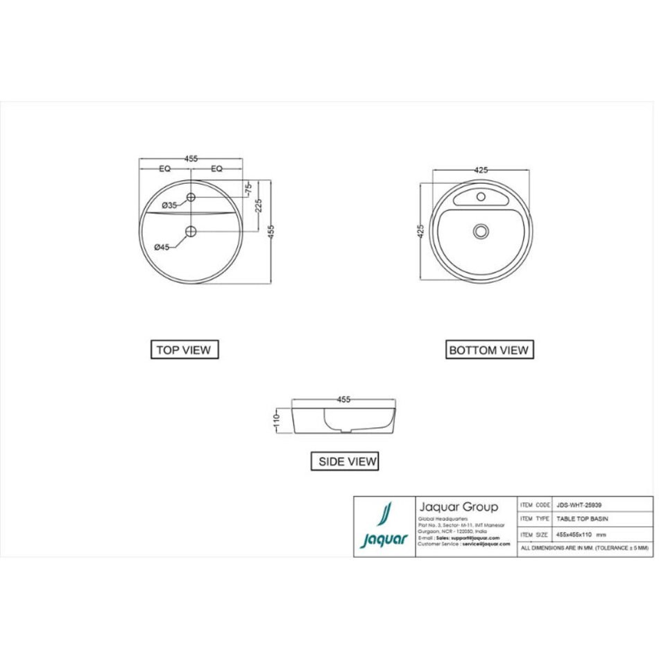 Раковина Jaquar JDS-WHT-25939, 45 см, фарфор, цвет белый