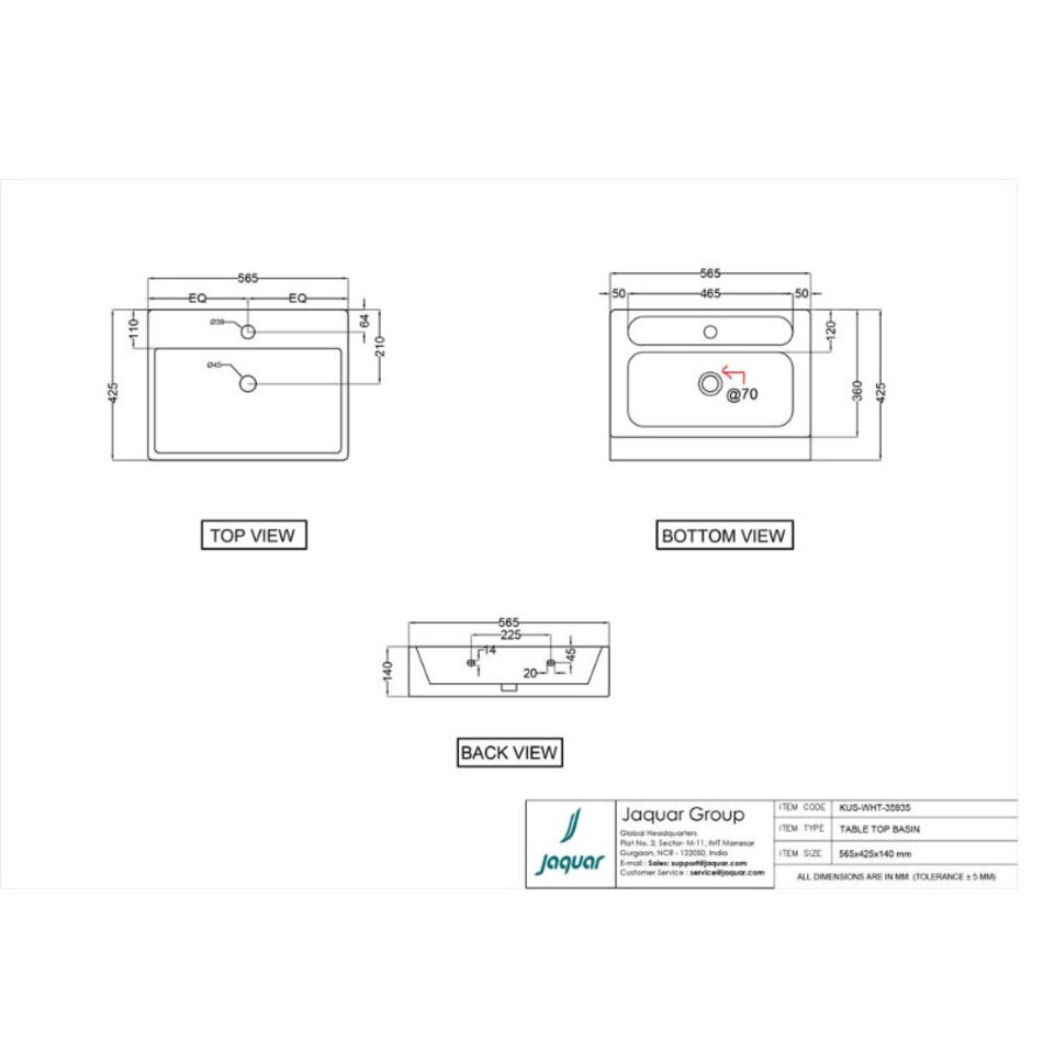 Раковина Jaquar KUS-WHT-35935, 56 см, фарфор, цвет белый