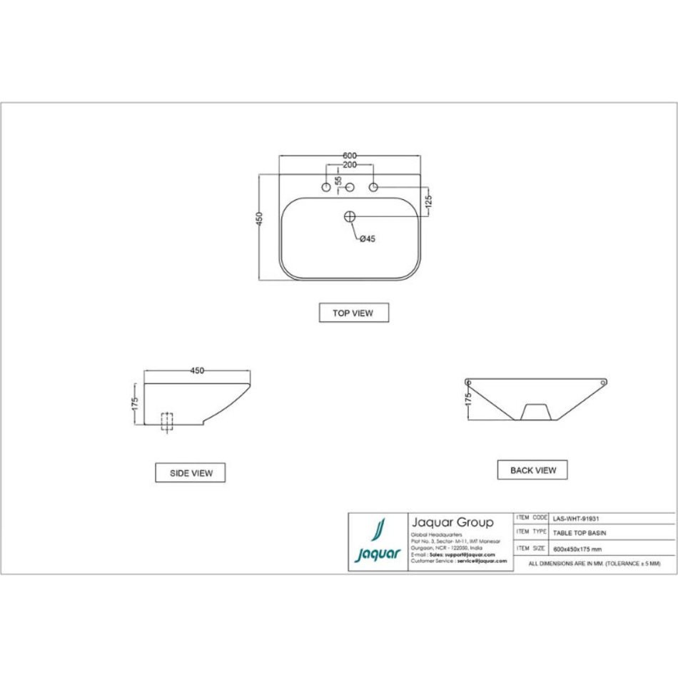Раковина Jaquar LAS-WHT-91931, 60 см, фарфор, цвет белый