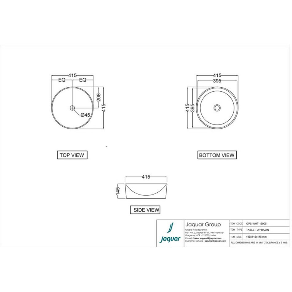 Раковина Jaquar OPS-WHT-15905, 42 см, фарфор, цвет белый