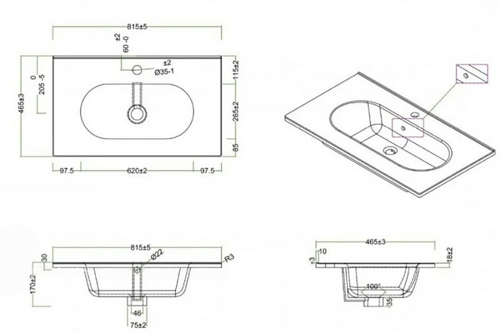Раковина керамическая BelBagno LOV-800-LVB, 81 см, белая