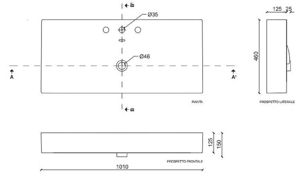 Раковина керамическая Tecla by Cezares Touch TC06011, 100 х 46 см, цвет белый глянец