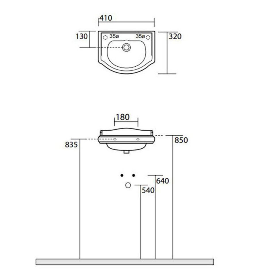 Раковина Kerasan Retro 103301*1 sx 41 х 32 см, отверстие под смеситель слева (SX), цвет белый