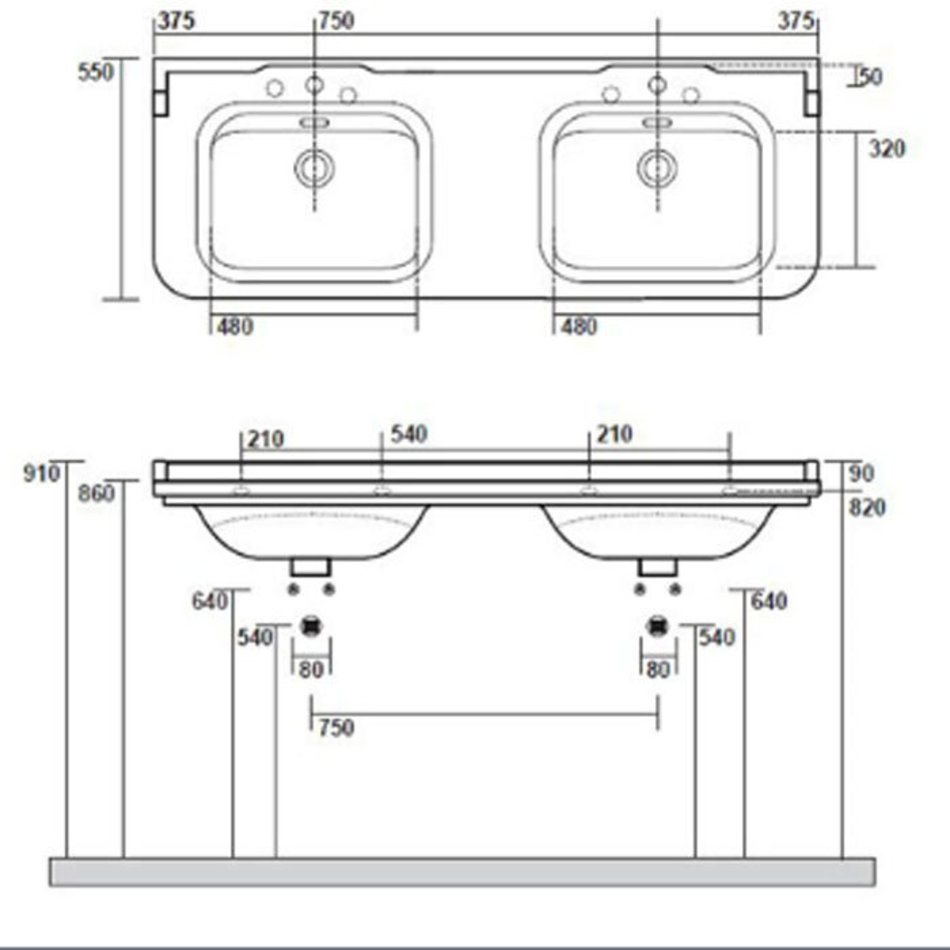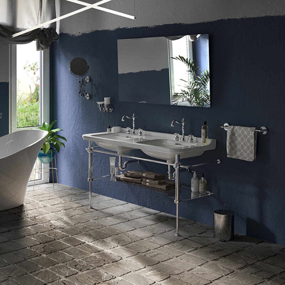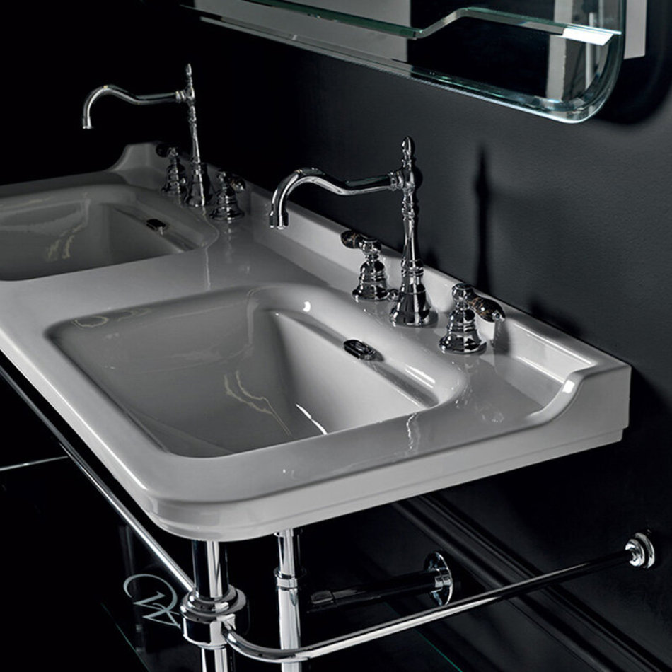 Раковина Kerasan Waldorf 4143K1bi/cr*3 керамическая двойная 150 x 55 x 27 см, c 3 отверстием под смеситель
