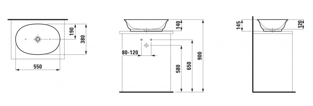 Раковина Laufen New Classic 8.1285.2.757.112.1 55 х 38 х 14.5 см, накладная, SaphirKeramik, без перелива, белый матовый
