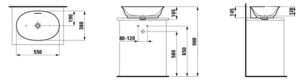 Раковина Laufen New Classic 8.1285.3.400.109.1 55 х 38 х 14.5 см, накладная, SaphirKeramik, с переливом, LCC, белый глянцевый