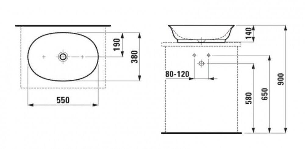 Раковина Laufen The New Classic 8.1285.2.000.112.1 55 х 38 х 14.5 см, накладная, белый глянцевый