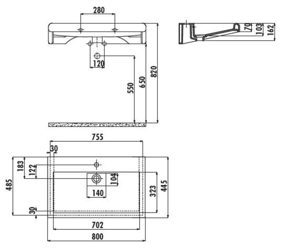 - Отверстия под смеситель