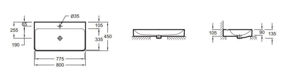 Раковина накладная Jacob Delafon Vox EVC012-00, 80 x 45 см, без переливного отверстия