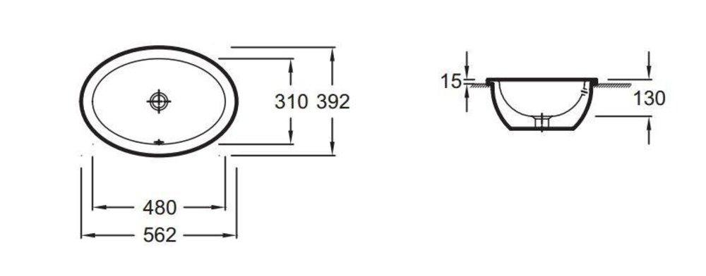 Раковина накладная Jacob Delafon Vox EYH002-00, 56 х 39 см, без переливного отверстия