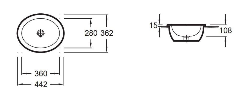 Раковина накладная Jacob Delafon Vox EYJ002-00, 44 х 36 см, без переливного отверстия