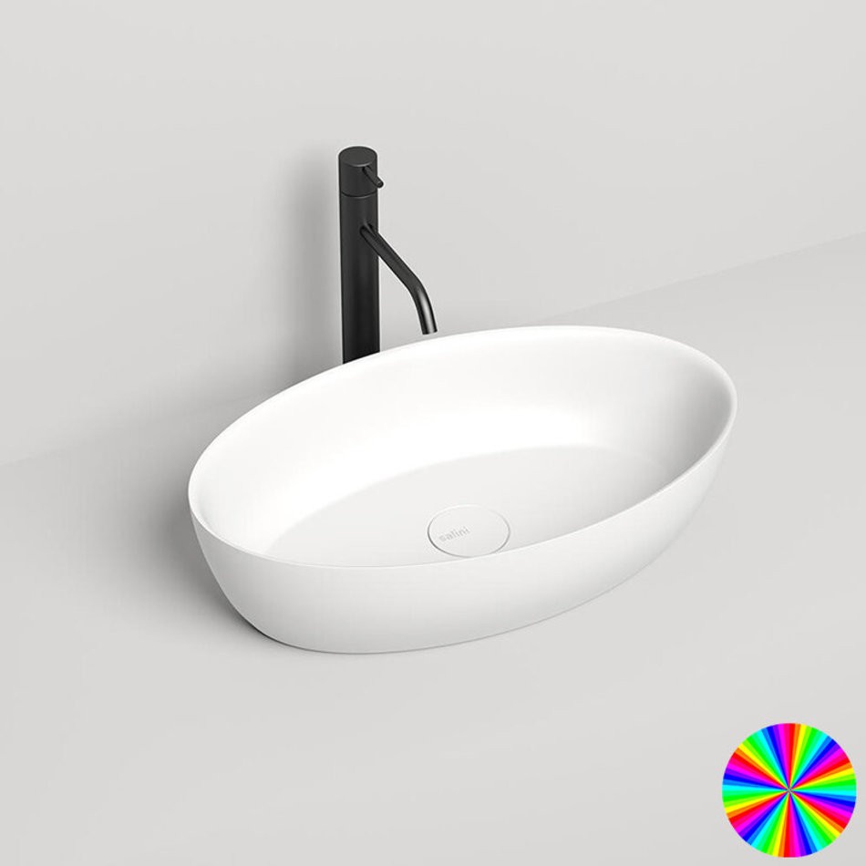Раковина накладная Salini Alda 01, 58 х 35 х 15 см, из искусственного камня S-Sense, белый глянцевый, покраска по RAL снаружи, 110611GRH