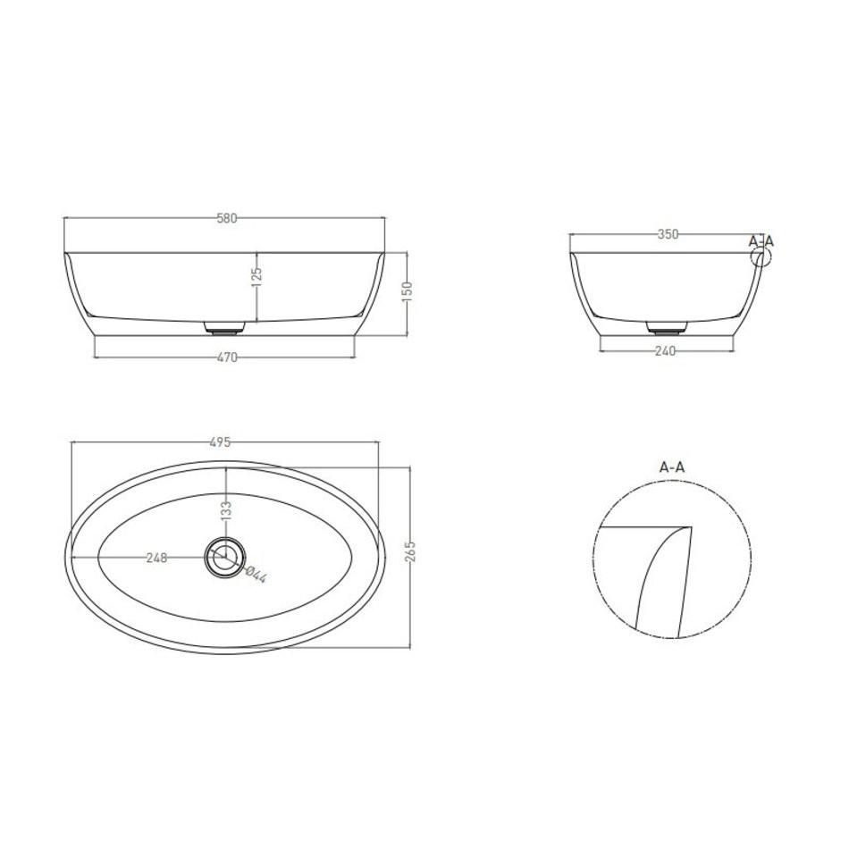 Раковина накладная Salini Alda 01, 58 х 35 х 15 см, из искусственного камня S-Stone, белый матовый, покраска по RAL снаружи, 110621MRH