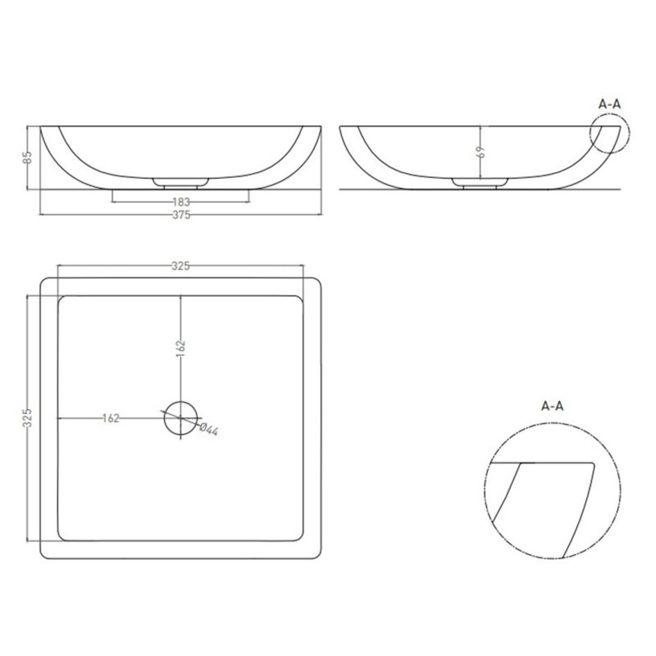 Раковина накладная Salini Callista 04, 37,5 х 37,5 х 8,5 см, из искусственного камня S-Sense, белый глянцевый, покраска по RAL снаружи, 1101108GRH