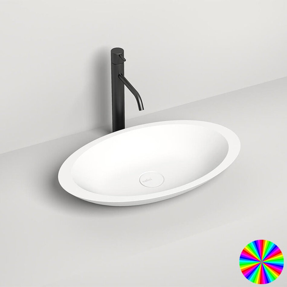 Раковина накладная Salini Callista 1101202SMRF 02, 57,5 х 35 х 8,5 см, из искусственного камня S-Stone, белый матовый, покраска по RAL полностью