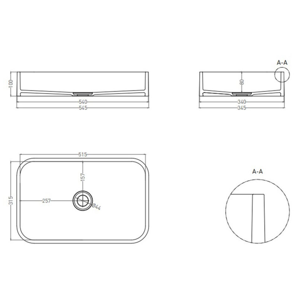 Раковина накладная Salini Callista 01, 54,5 х 34,5 х 10 см, из искусственного камня S-Stone, белый матовый, покраска по RAL полностью, 1101204SMRF