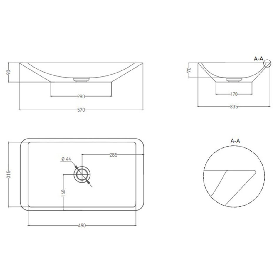 Раковина накладная Salini Callista 1101207SMRH 03, 57 х 33,5 х 9 см, из искусственного камня S-Stone, белый матовый, покраска по RAL снаружи