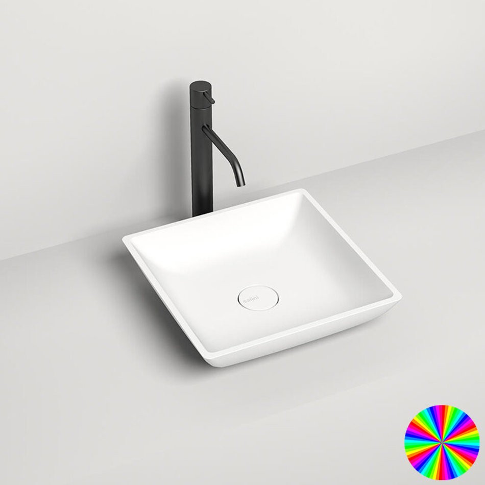 Раковина накладная Salini Callista 04, 37,5 х 37,5 х 8,5 см, из искусственного камня S-Stone, белый матовый, покраска по RAL снаружи, 1101208SMRH