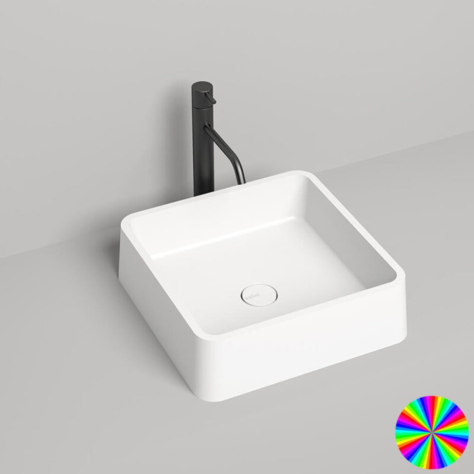 Раковина накладная Salini Gloria 1102202MRF 02, 41,5 х 41,5 х 12,5 см, из искусственного камня S-Stone, белый матовый, покраска по RAL полностью