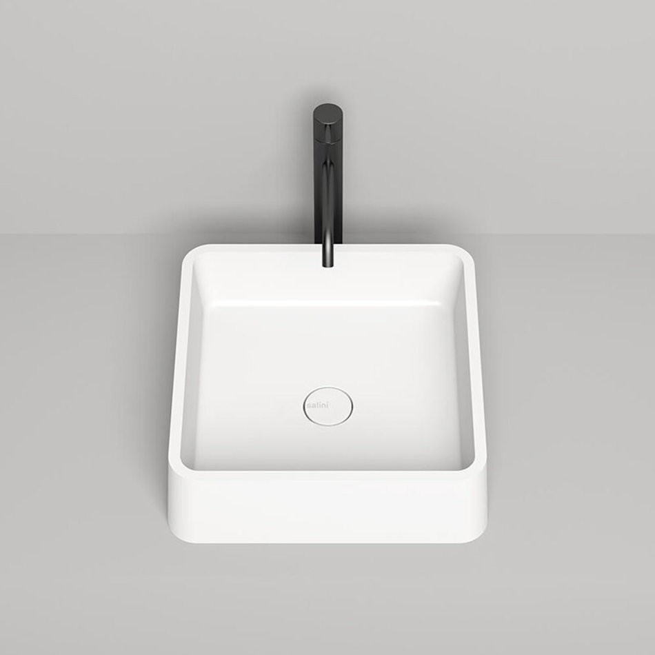 Раковина накладная Salini Gloria 1102202MRH 02, 41,5 х 41,5 х 12,5 см, из искусственного камня S-Stone, белый матовый, покраска по RAL снаружи