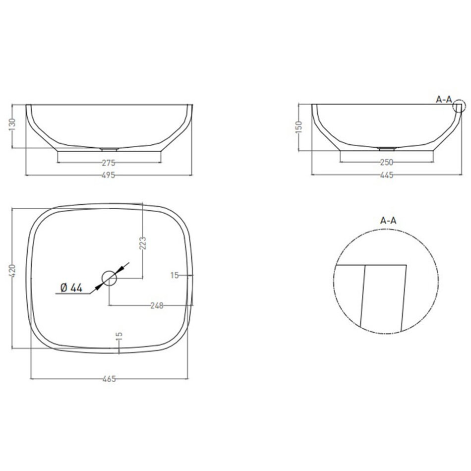 Раковина накладная Salini Gloria 08, 49,5 х 44,5 х 15 см, из искусственного камня S-Stone, белый матовый, покраска по RAL снаружи, 1102208MRH