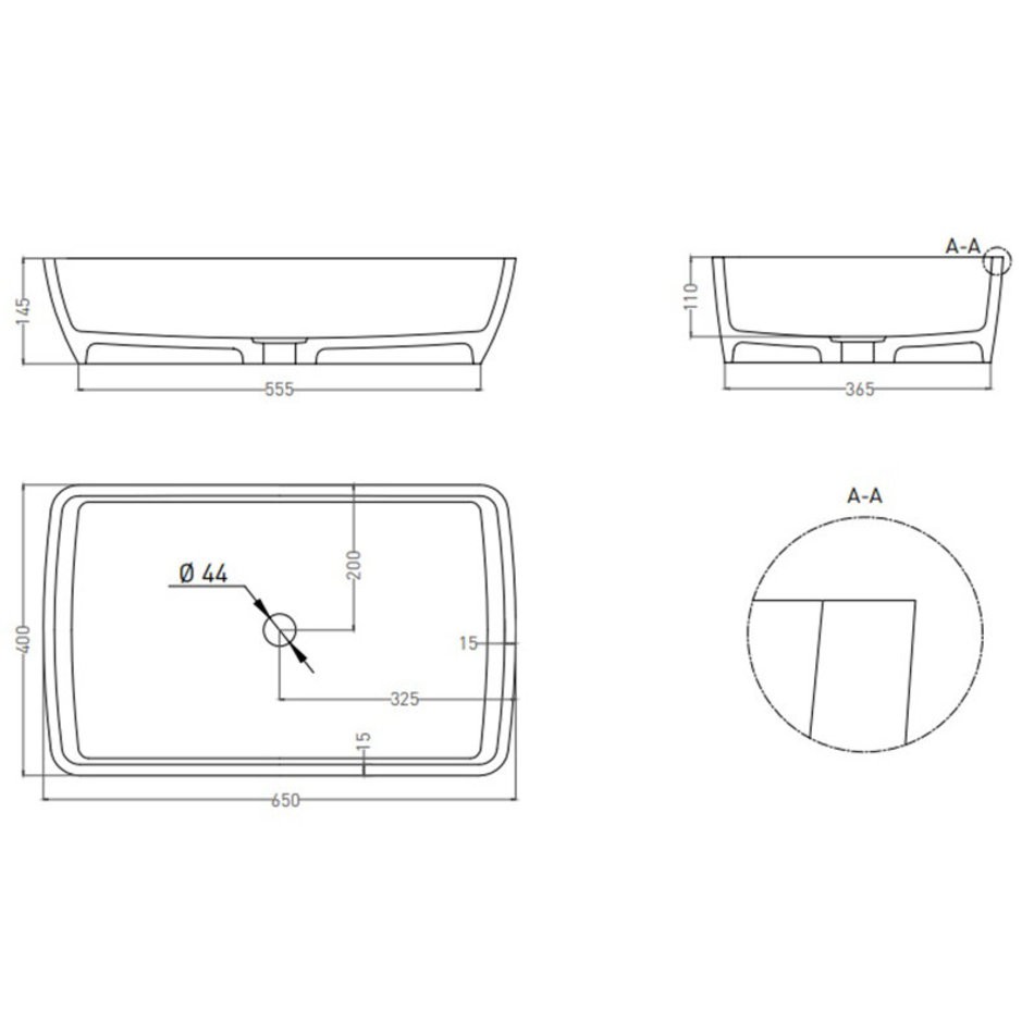 Раковина накладная Salini Gloria 11, 65 х 40 х 14,5 см, из искусственного камня S-Stone, белый матовый, покраска по RAL снаружи, 1102212MRH