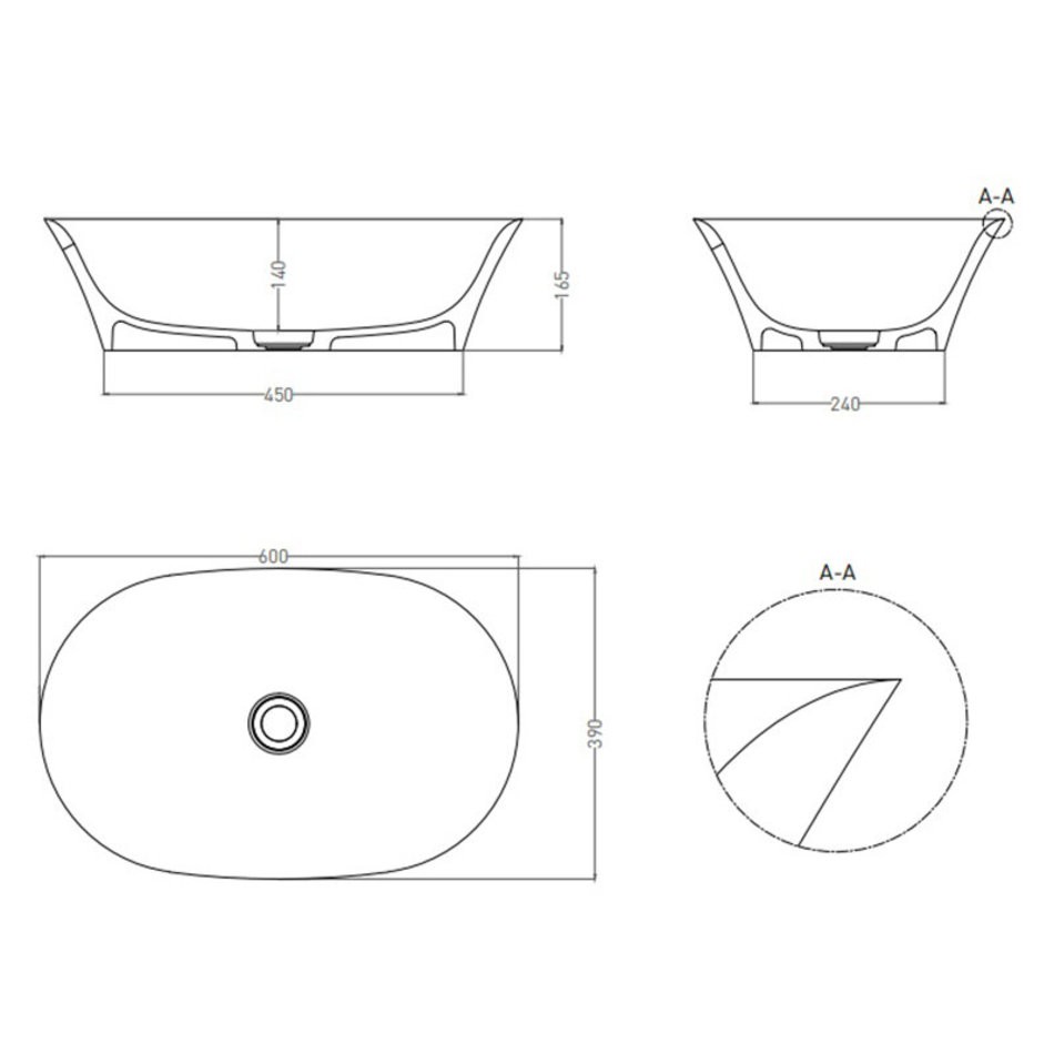 Раковина накладная Salini Mona, 60 х 39 х 16,5 см, из искусственного камня S-Stone, белый матовый, покраска по RAL полностью, 110821MRF