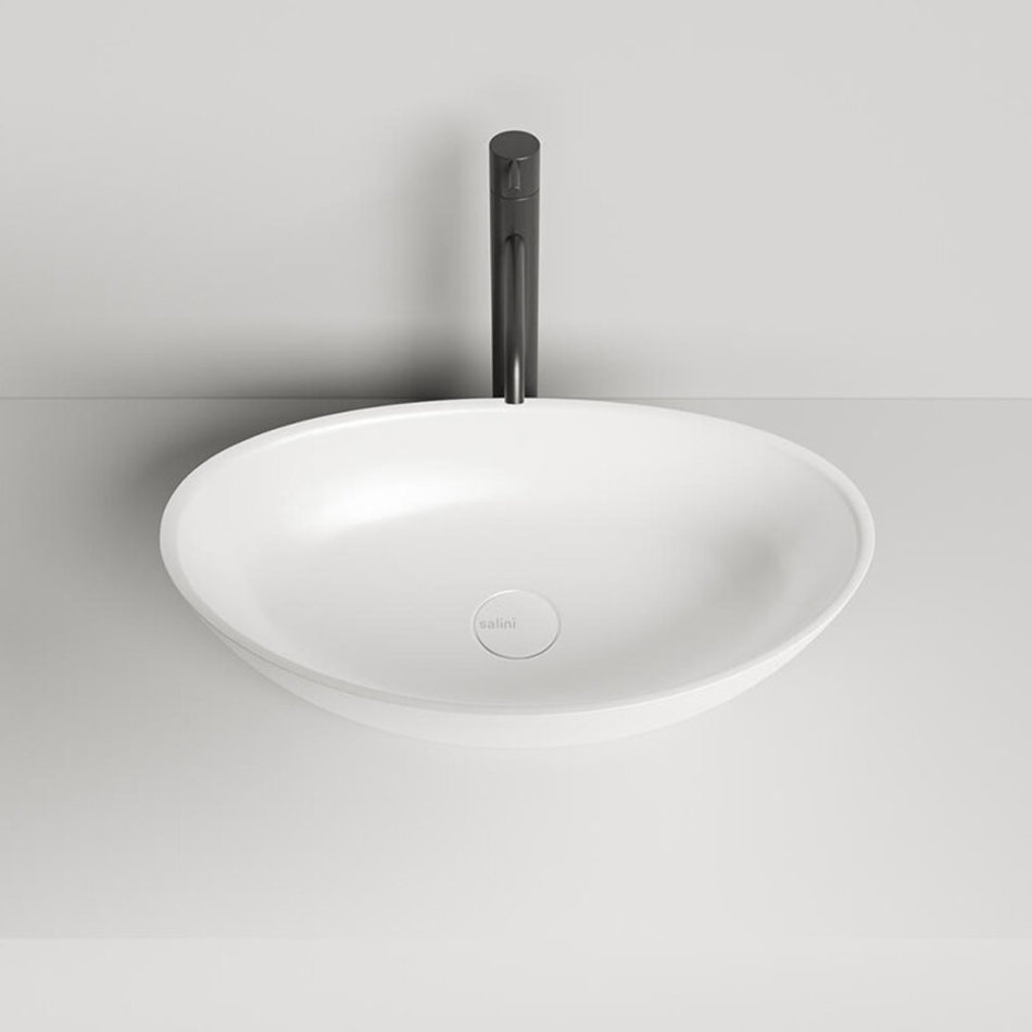 Раковина накладная Salini Noemi 1101103GRF, 56 х 34 х 15 см, из искусственного камня S-Sense, белый глянцевый, покраска по RAL полностью
