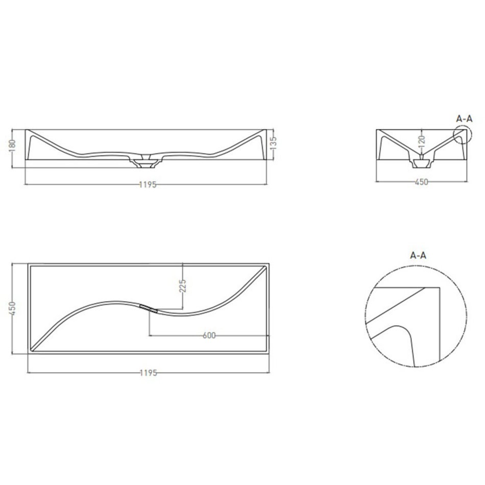 Раковина накладная Salini Sonata, 119,5 х 45 х 18 см, из искусственного камня S-Stone, белый матовый, покраска по RAL полностью, 1401201MRF